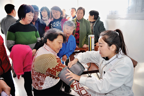 3月7日上午,代縣團縣委在上館鎮(zhèn)橙草溝村舉行“傳承雷鋒精神,投身脫貧攻堅”志愿服務活動啟動儀式,旨在動員全縣各級團組織和廣大團員青年開展為期一個月的以“傳承雷鋒精神,投身脫貧攻堅”為主題的“送溫暖、獻愛心”、“送金融”、“送科技”、“送文明健康”系列學雷鋒志愿服務活動。啟動儀式現(xiàn)場,共收到全縣捐贈的課桌凳1900套、圖書1126冊、文具320件、衣物1063件、書包33個、體育用品14件,將分發(fā)到貧困地區(qū)農(nóng)村和學校。圖為志愿者為民群眾義診。(石俊文 攝)