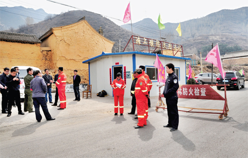 4月6日,代縣灘上鎮(zhèn)防火檢查站消防人員正在對進入山區(qū)的人員、車輛進行護林防火安全檢查。立春以來,代縣縣委、縣政府大抓護林防火工作,各鄉(xiāng)鎮(zhèn)實行鄉(xiāng)鎮(zhèn)干部包村、包片責任制,組建了30—50人的護林防火突擊隊,在通往山區(qū)、林區(qū)的各個交通要道設(shè)立護林防火檢查站,對過往車輛、人員進行護林防火安全檢查和護林防火宣傳教育。(楊繼興 攝)