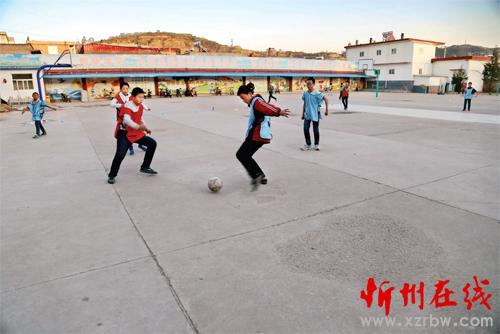 隨著《中國足球改革發(fā)展總體方案》的出臺,靜樂縣將足球作為學校體育課必修內(nèi)容,以加快推進校園足球運動全面開展。圖為該縣利民小學足球興趣班學生在放學后踢足球的場景。(閆曉梅 攝)