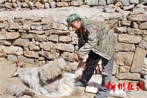 岢嵐縣西豹峪鄉(xiāng)謝家坪村農(nóng)民王占財,通過十多年努力,成為當(dāng)?shù)剡h(yuǎn)近聞名的養(yǎng)羊大戶。目前,他共飼養(yǎng)了240 余只晉嵐絨山羊,在每年三、四月份的抓絨期,便可收入20000余元。圖為他在抓絨。(李俊武 攝)