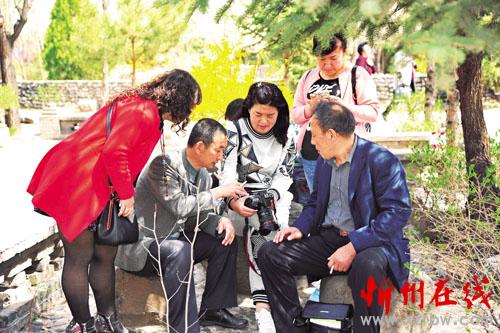 近日,代縣老干局和代縣老年大學在楊家將文化園舉辦攝影采風實踐課,77名攝影愛好者來到風景秀麗的楊家將文化園進行攝影實踐。活動中,學員興趣盎然,情緒高漲,他們互相學習,共同探討,將所學的攝影知識應運到實踐中來。圖為學員們正在相互交流攝影技藝(石俊文 劉睿 攝)