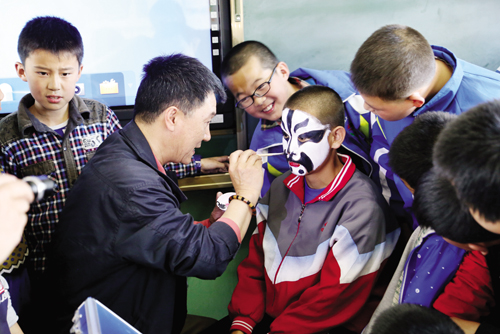 4 月21 日,靜樂縣愛樂希望小學校園內(nèi)一片歡聲笑語,受文化部委托,國家京劇院京劇演員馬建華、王改欣,中國歌劇舞劇院舞蹈演員王樂、王亮在靜樂開展了為期十天的文化藝術培訓活動。圖為培訓現(xiàn)場。(閆曉梅 攝)