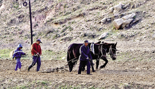 寧武縣東馬坊小學五年級學生孫存政,經(jīng)常利用節(jié)假日回到地處高寒山區(qū)的達達店村,做些力所能及的家務和農(nóng)活,既幫了家里的忙,又增加了社會實踐知識。圖為“五一”期間,小孫跟爺爺學耕田。(薛慧 攝)