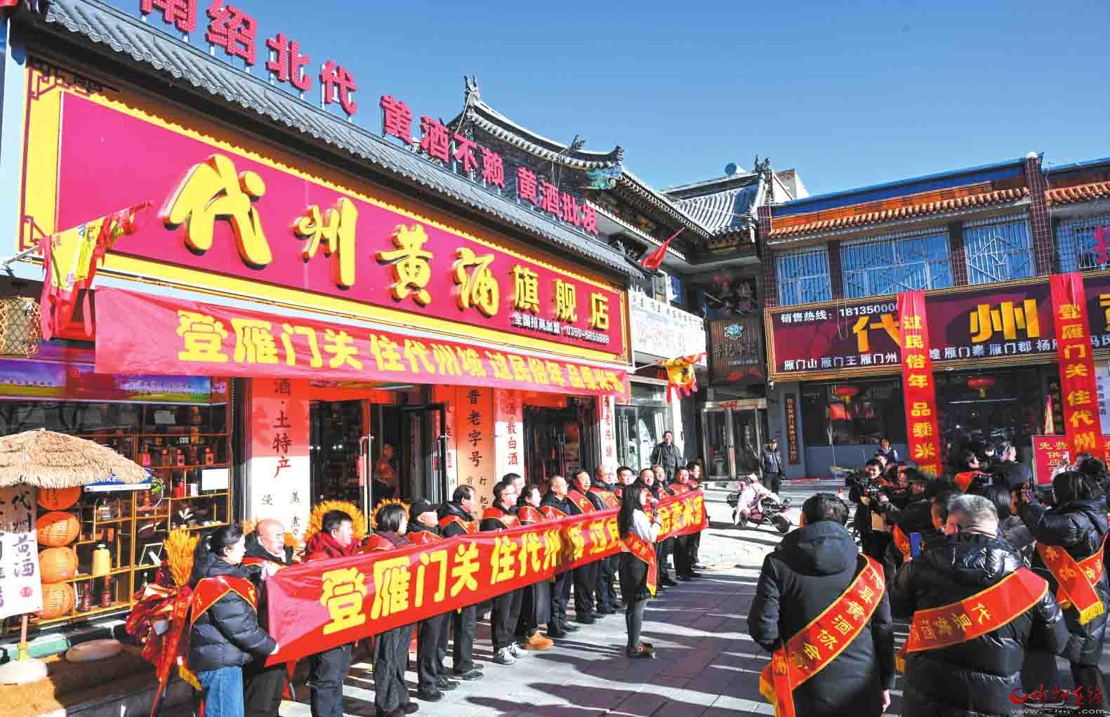 1月11日,代縣11家代州黃酒品牌門店聯(lián)合開業(yè),吸引了來自代縣酒業(yè)界的行業(yè)代表、特邀嘉賓及媒體單位等近百人參加開業(yè)儀式。儀式結(jié)束后,主辦方向環(huán)衛(wèi)工人代表贈(zèng)送了代州黃酒慰問品。(王晉東攝)