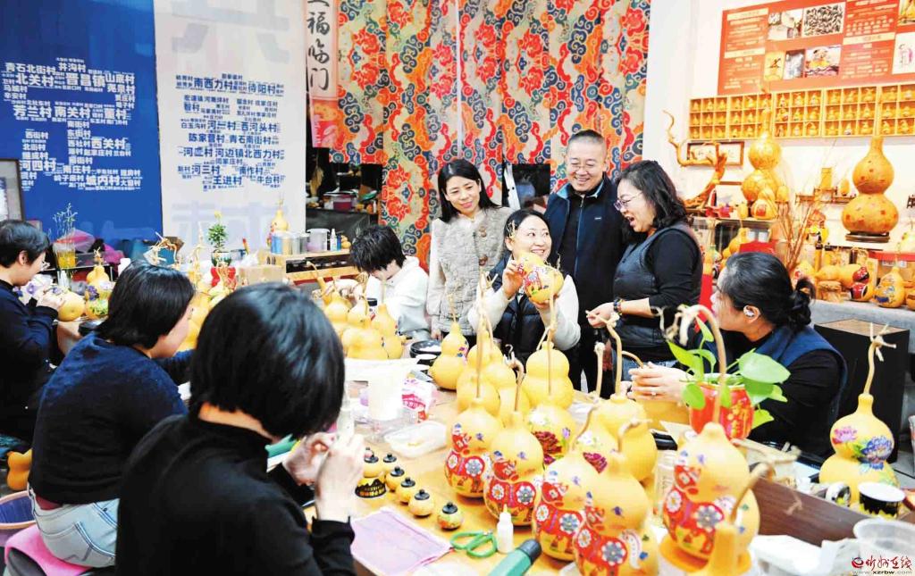 1月17日,定襄縣弘揚(yáng)遠(yuǎn)傳媒有限公司的員工正在趕制一批上海和香港訂制的葫蘆景泰藍(lán)馬年文創(chuàng)產(chǎn)品。(張晉蘭攝