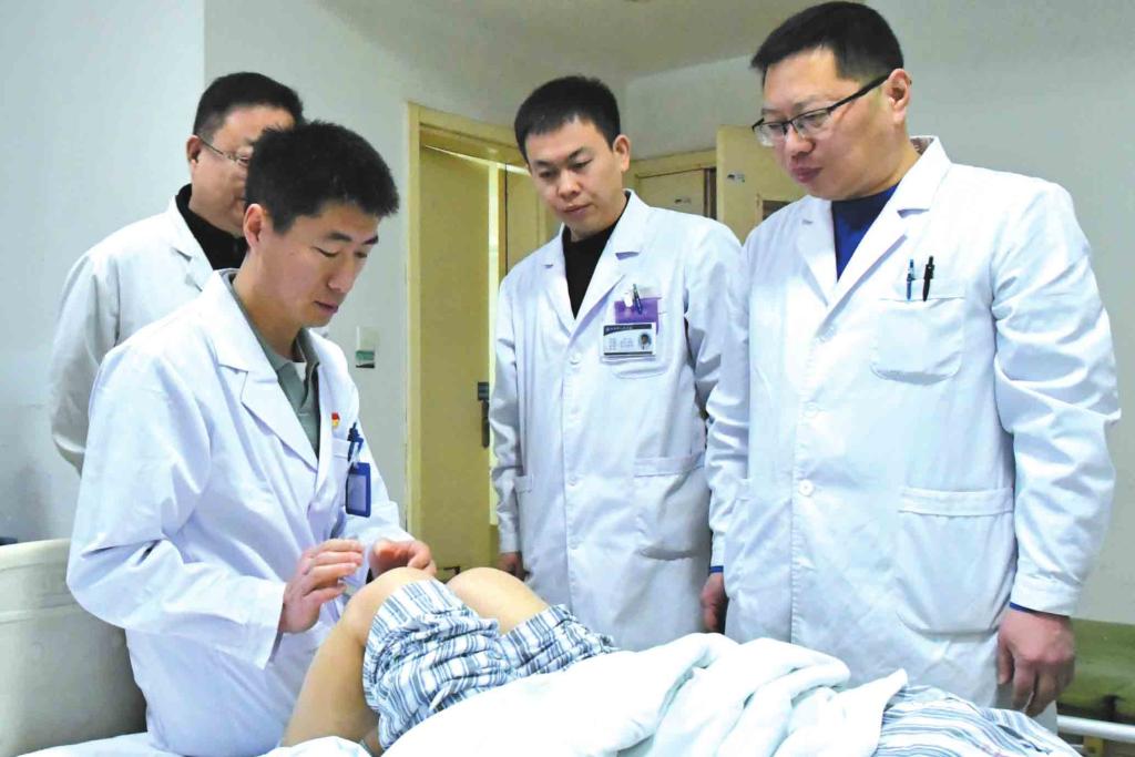 我市與山西醫(yī)科大學(xué)第一醫(yī)院簽署合作共建忻州市人民醫(yī)院框架協(xié)議以來,省級專家下沉坐診已成常態(tài)。圖為山西醫(yī)科大學(xué)第一醫(yī)院常駐專家、骨科主任韓永斌在市人民醫(yī)院骨科病房查看患者腿部術(shù)后情況。(李潤攝)