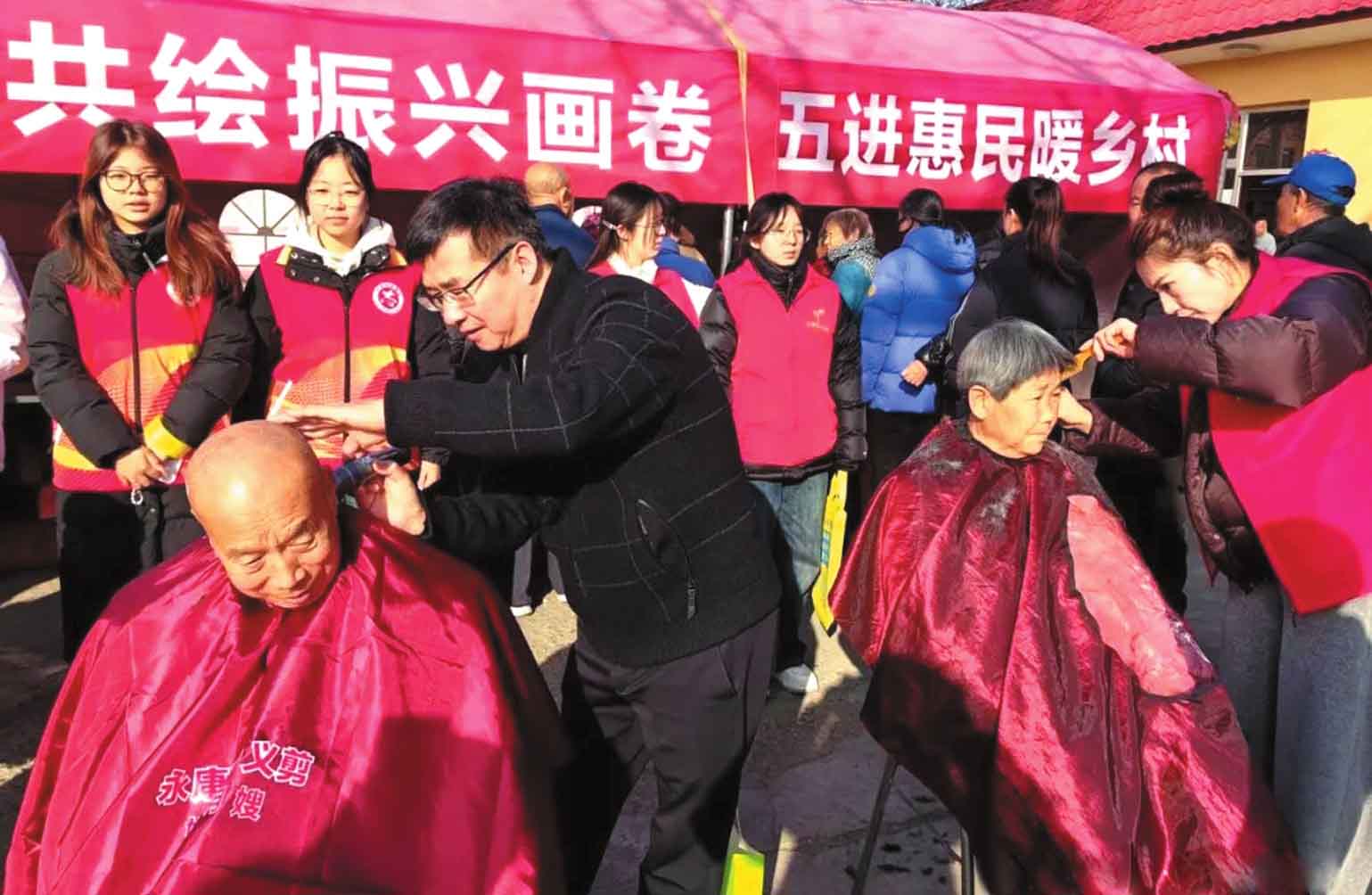 近日,原平市北城街道永康社區(qū)聯(lián)合沙晃村開展結(jié)對(duì)共建志愿服務(wù)活動(dòng),為村民提供免費(fèi)測(cè)量血壓血糖、口腔診療、愛心理發(fā)等便民服務(wù)。(本報(bào)通訊員 攝)