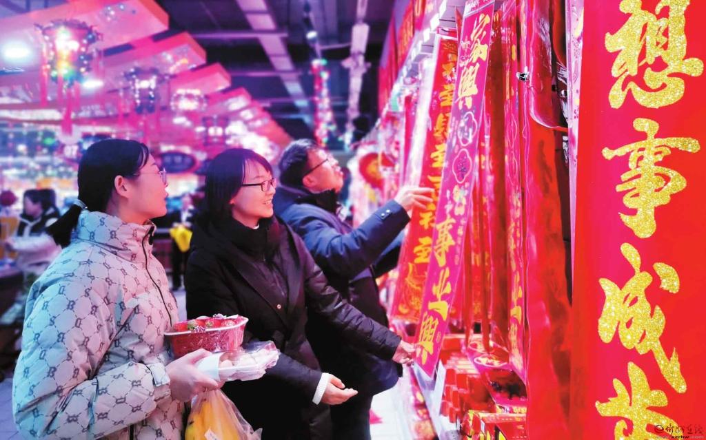 2月9日,顧客在忻州城區(qū)家家利超市選購(gòu)春聯(lián)。春節(jié)的腳步越來(lái)越近,我市各大超市和集貿(mào)市場(chǎng)的各式春聯(lián)、生肖貼畫等春節(jié)飾品琳瑯滿目,處處洋溢著祥和喜慶的節(jié)日氛圍。(宮清華攝)