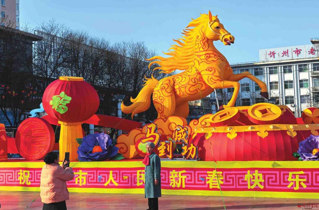 馬年春節(jié)的腳步越來越近了,忻州城區(qū)張燈結(jié)彩,處處洋溢著節(jié)日的喜慶氣氛。圖為市民在城區(qū)日月廣場(chǎng)與馬年迎春花燈合影。(記者張存良攝