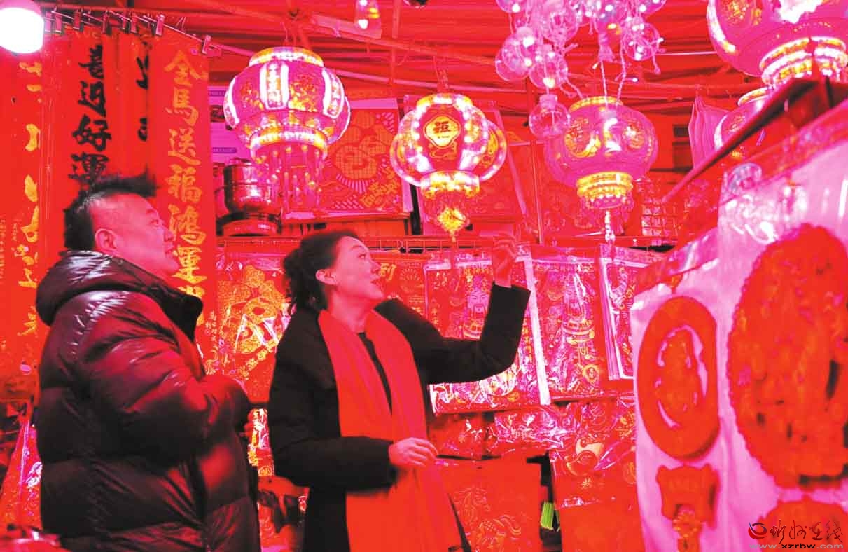 新春將近,寧武縣消費市場年味濃郁,紅燈籠作為迎新春的經(jīng)典元素,成為年貨市場的“主角”。圖為市民正在采購燈籠。(