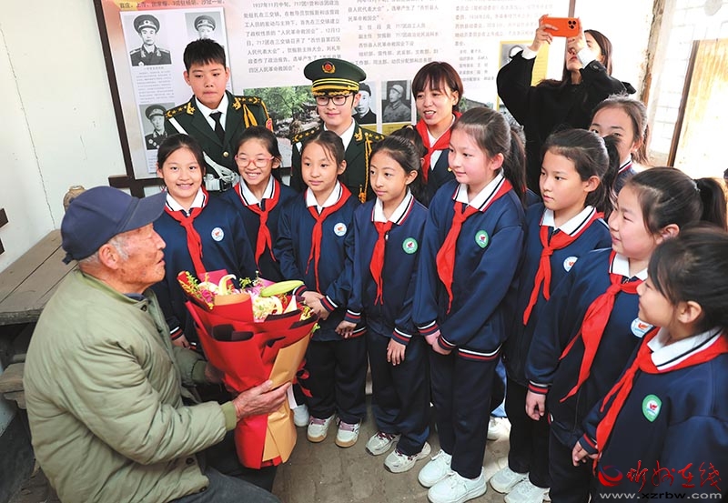 3月27日,忻州市七一路小學(xué)組織黨員、少先隊員走進(jìn)忻府區(qū)官莊村原忻縣(西)第一個紅色黨支部官莊黨支部舊址,開展“傳承紅色薪火,爭做新時代好隊員”主題活動,追憶崢嶸歲月,感悟革命精神。圖為老兵武三毛給孩子們講述抗戰(zhàn)故事。(記者 張存良攝)