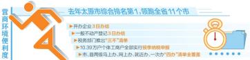 近日,記者從太原市政府新聞辦召開的新聞發(fā)布會(huì)上獲悉,山西省營(yíng)商環(huán)境整體評(píng)估報(bào)告顯示,去年太原市營(yíng)商環(huán)境便利度綜合排名第1,領(lǐng)跑全省11個(gè)市;在國(guó)家發(fā)改委組織的對(duì)包括直轄市、計(jì)劃單列市、省會(huì)城市在內(nèi)的41座城市進(jìn)行的營(yíng)商環(huán)境評(píng)價(jià)中,太原市營(yíng)商環(huán)境便利度獲評(píng)優(yōu)良。