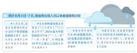 “我們將本著‘有汛無(wú)汛隨時(shí)準(zhǔn)備、晴天雨天全員值守’的原則,強(qiáng)化隱患排查和處置力度,嚴(yán)陣以待,嚴(yán)防死守,以百分之一百的準(zhǔn)備應(yīng)對(duì)百分之一的可能,確保全省安全度汛?!毖娬f(shuō)。(張毅)