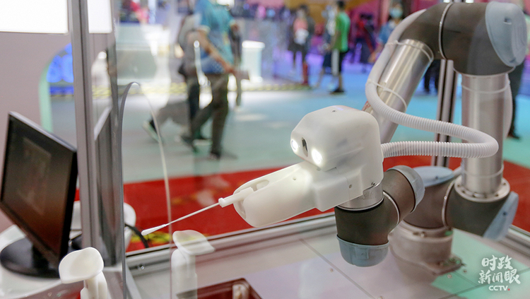 △在今年服貿(mào)會(huì)上亮相的咽拭子采樣機(jī)器人。