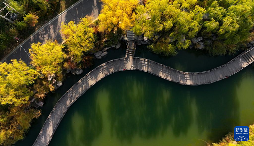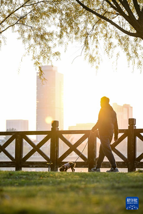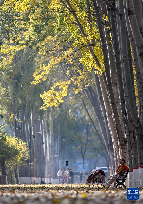 10月28日,市民在銀川市海寶公園休閑、散步。(新華社記者 馮開華 攝)