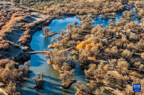 這是10月30日拍攝的胡楊林(無人機照片)。(新華社記者 連振 攝)