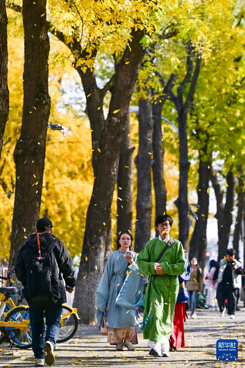 正值深秋,北京街頭秋色斑斕,景色怡人。