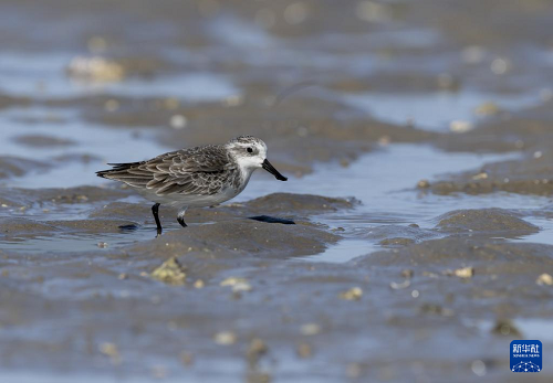 11月9日,一只勺嘴鷸在泉州圍頭灣灘涂上覓食。(新華社記者 魏培全 攝)