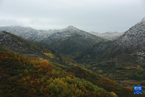 這是2025年10月17日在平?jīng)鍪嗅轻紖^(qū)拍攝的太統(tǒng)崆峒山國家級自然保護區(qū)深秋初雪景色。(新華社發(fā) 吳希會 攝)