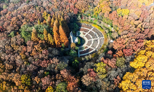 11月30日拍攝的江蘇南京鐘山風(fēng)景名勝區(qū)音樂臺(tái)初冬景觀(無人機(jī)照片)。(新華社發(fā) 孫忠南 攝)