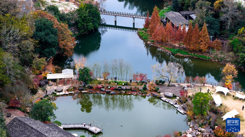 冬日時(shí)節(jié),福建省福州市晉安區(qū)壽山鄉(xiāng)九峰村層林盡染,火紅的楓葉和水杉與古樸村落、清澈溪流、石拱橋影相映成趣,共同勾勒出一幅冬日勝景,吸引眾多游人前來(lái)。
