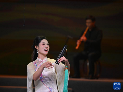 12月10日,南音社團代表在“南音薪傳 四海弦歌”專場演出上演唱《遠(yuǎn)望鄉(xiāng)里》。(新華社記者 姜克紅 攝)