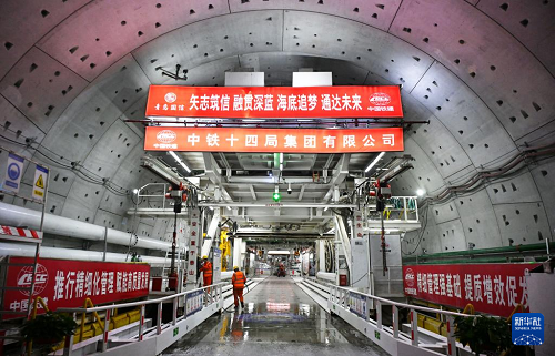 12月15日,中鐵十四局建設(shè)者在海平面下91米進(jìn)行施工作業(yè)。(新華社記者 李紫恒 攝)