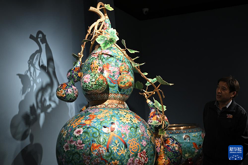 12月15日,觀眾參觀展出的景泰藍(lán)作品《福祿萬(wàn)代》。(新華社記者 金良快 攝)