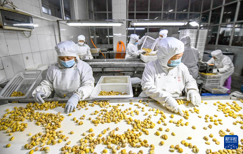 12月16日,工人在河北省遵化市蘇家洼鎮(zhèn)的一家食品有限公司車間加工板栗。(新華社發(fā) 劉滿倉 攝)