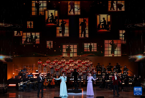 12月16日,在北京二七劇場舉辦的“中國夢·勞動美”2026新年音樂會上,演員演唱《光芒閃耀的你》。(新華社記者 才揚 攝)