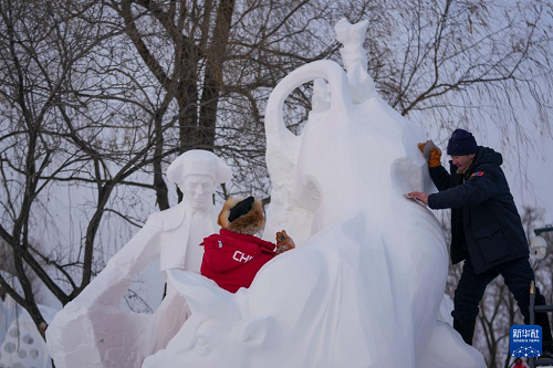 1月8日是“三九”首日,為期4天的第28屆中國(guó)·哈爾濱國(guó)際雪雕比賽在嚴(yán)寒中進(jìn)入第三天,雪雕作品顯露芳容。