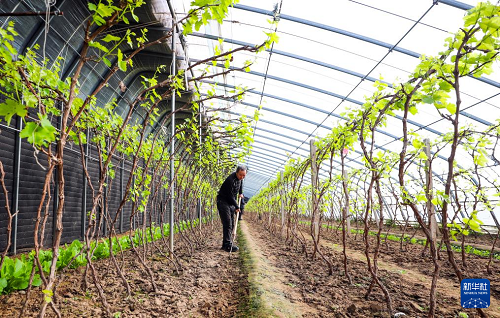 1月20日,河北省唐山市海港經(jīng)濟(jì)開發(fā)區(qū)王灘鎮(zhèn)農(nóng)民在葡萄大棚松土。(新華社發(fā) 劉滿倉 攝)