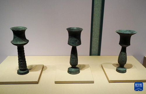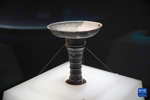 這是1月27日在山東博物館“對話蛋殼黑陶高柄杯”明星文物展上拍攝的龍山文化蛋殼陶杯。(新華社記者 徐速繪 攝)