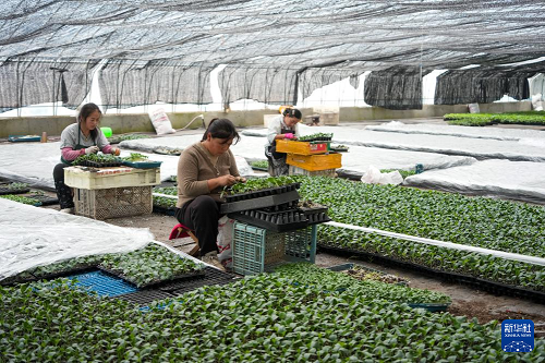 1月28日,在莘縣燕店鎮(zhèn)的蔬菜種植大棚,農(nóng)戶在進行大棚蔬菜種苗嫁接工作。(新華社記者 徐速繪 攝)