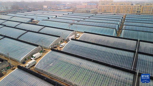 1月28日拍攝的莘縣燕店鎮(zhèn)的蔬菜種植大棚(無人機照片)。(新華社記者 徐速繪 攝)