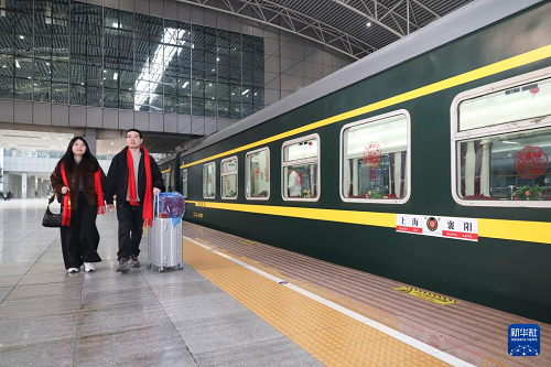 2月11日,80名在上海務工的湖北棗陽籍人員從上海站出發(fā),乘坐K1127次列車返回湖北棗陽。該趟列車途經(jīng)上海松江等車站時,陸續(xù)有旅客登乘,一同返回棗陽,共計236人。這是湖北省棗陽市總工會首次出資組織在滬的棗陽務工人員春節(jié)返鄉(xiāng)過年。