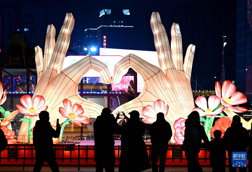 2月11日,市民在甘肅省定西市安定區(qū)新時代廣場觀賞花燈。(新華社發(fā) 陳永剛 攝)