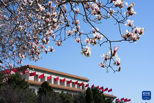 國家大劇院旁玉蘭花盛開(3月9日攝)。(新華社記者 鞠煥宗 攝)