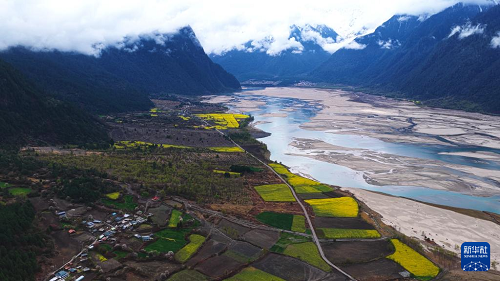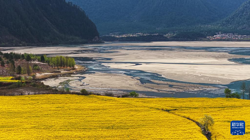 3月20日拍攝的西藏林芝市波密縣易貢鄉(xiāng)的油菜花田(無(wú)人機(jī)照片)。(新華社記者 普布次仁 攝)