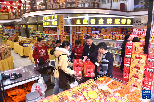 在廣西柳州市青云民生市場一家特產超市,游客在選購螺螄粉(2026年3月10日攝)。(新華社記者 黃孝邦 攝)