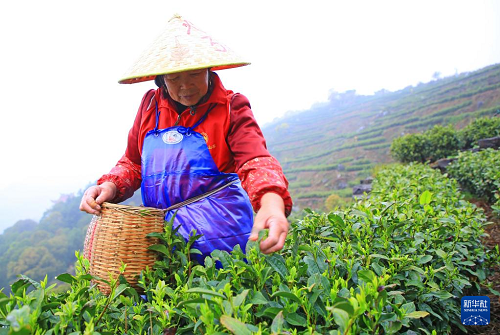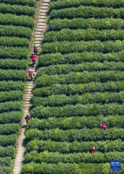 3月29日,在廣西賀州市平桂區(qū)鵝塘鎮(zhèn)盤谷村,茶農在采摘明前茶。(新華社發(fā) 黃旭胡 攝)