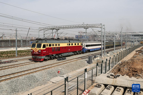 3月29日,檢測列車從建設(shè)中的西安東站駛出,開往湖北鄖西站。(新華社發(fā) 劉翔 攝)