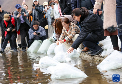 4月15日,吉林省2026年圖們江水生生物資源增殖放流活動(dòng)在琿春市密江河大麻哈魚國家級(jí)水產(chǎn)種質(zhì)資源保護(hù)區(qū)舉行,共放流大麻哈魚52萬尾、馬蘇大麻哈魚8萬尾。魚苗均經(jīng)嚴(yán)格檢疫、計(jì)數(shù),并由公證機(jī)構(gòu)現(xiàn)場(chǎng)公證。