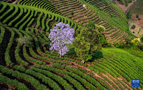 4月15日在普洱市思茅區(qū)倚象鎮(zhèn)拍攝的茶山(無人機照片)。(新華社記者 陳欣波 攝)