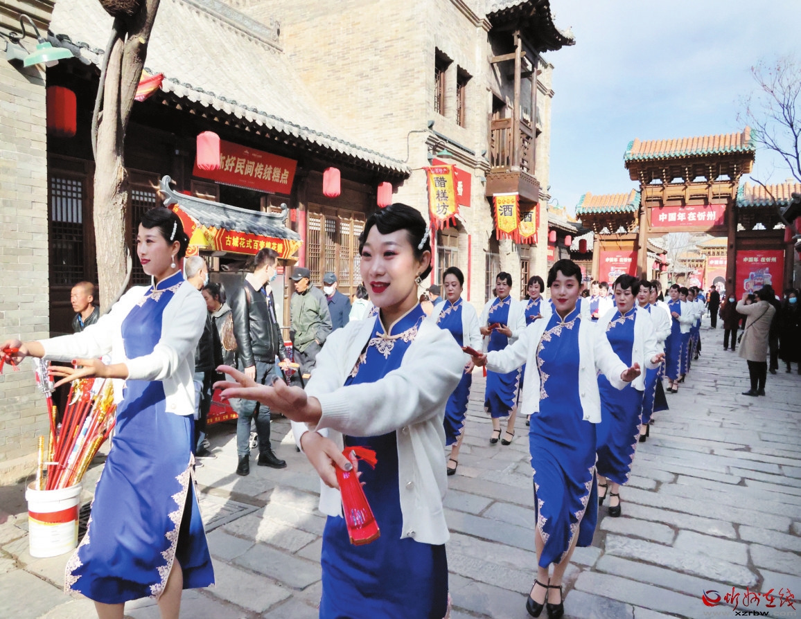 定襄社火和各類傳統(tǒng)民俗活動歷史悠久,各類極具地方特色的民俗文化活動觀賞性很強,二兔藝術(shù)團盡情舞動,表情歡悅;老干部藝術(shù)團鶴發(fā)童顏,精神抖擻;夢之藍旗袍隊舉止高雅,體態(tài)大方;紅燈籠高蹺隊腳踏雙木,輕松自如……有趣的互動,讓大家樂在其中。喜慶的樂曲,歡快的表演,充分展現(xiàn)了人民群眾的新生活、新風(fēng)尚、新面貌,迎來觀眾一片喝彩聲,讓游客感受到了定襄的民俗文化魅力。(張存良 攝)
