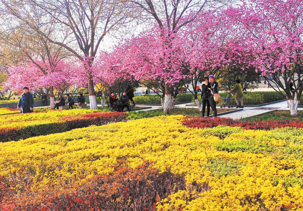 時(shí)值春暖花開(kāi)季節(jié),忻州城區(qū)處處繁花似錦,美不勝收。圖為4月14日,市民在忻州城區(qū)和平廣場(chǎng)靜享春光。 (宮清華 攝)