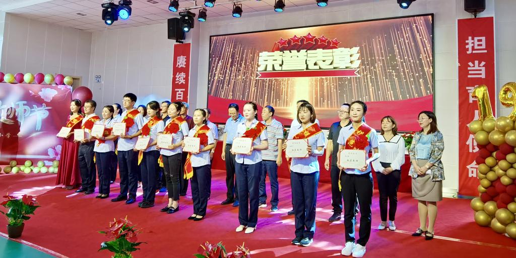 活動現(xiàn)場,學(xué)校對14名優(yōu)秀教師進行了表彰,其中1名為優(yōu)秀教育工作者,8名為模范教師,5名為模范班主任。通過表彰先進,鼓勵老師們再接再厲,繼續(xù)發(fā)揮愛崗敬業(yè)、立德樹人,三尺講臺育英才的精神,為下一代成長教育發(fā)揮更大的作用。