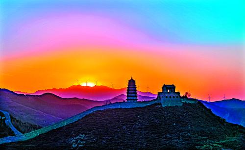 山勢險峻的雁門關(guān),四季都有獨特的風(fēng)景。春天,百花盛開,使得雄渾的長城燦爛奪目;夏天,色彩斑斕,背靠翠綠的山林,呈現(xiàn)生機(jī)勃勃的景象;秋天,丹楓如火,由綠轉(zhuǎn)黃,由黃轉(zhuǎn)紅,如詩如畫,美不勝收;冬天,長城被雪花覆蓋,顯得更加滄桑,猶如童話世界般靜謐而誘人。