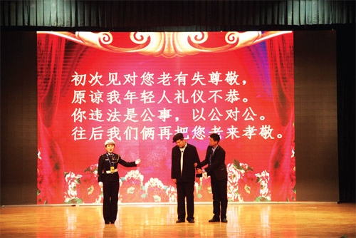 1月27日至29日,偏關縣公安局交警大隊交通安全文藝宣傳隊在隊長們的帶領下,先后走進市實驗中學、市客運中心、國家電網(wǎng)忻州供電分公司進行了三場演出,用自編自導自演、群眾喜聞樂見的“漫翰調”、“二人臺”、北路梆子、民歌等一系列極具地域文化特色的地方小戲、說唱歌舞等曲藝形式進行宣傳演出,贏得滿堂喝彩,場場掌聲雷動。作為春節(jié)回家路上的一道文化盛宴,這次春節(jié)前的平安出行警示教育“送安全下鄉(xiāng)”巡演是我市公安交警精心策劃、編排的春運交通安全宣傳行動之一。28日,市客運中心人頭攢動,熙熙攘攘,大廳外懸掛的橫幅標語“守護您的平安出行,保障道路安全暢通是每一位交警的神圣職責!”格外醒目。候車大廳里,暖意融融,市公安局交警支隊組織的春運交通安全文藝演出正在進行,交警版的民間小調《拜大年》、小品《警鐘聲聲》、雙簧《二愣子》等節(jié)目令人賞心悅目、捧腹不止。在歡笑之余,提醒和教育廣大群眾自覺抵制不文明、不安全交通行為,觀看演出的旅客和客車司機紛紛感慨,這樣的宣傳教育生動形象,人人愛看且耐人尋味,警示作用很大。