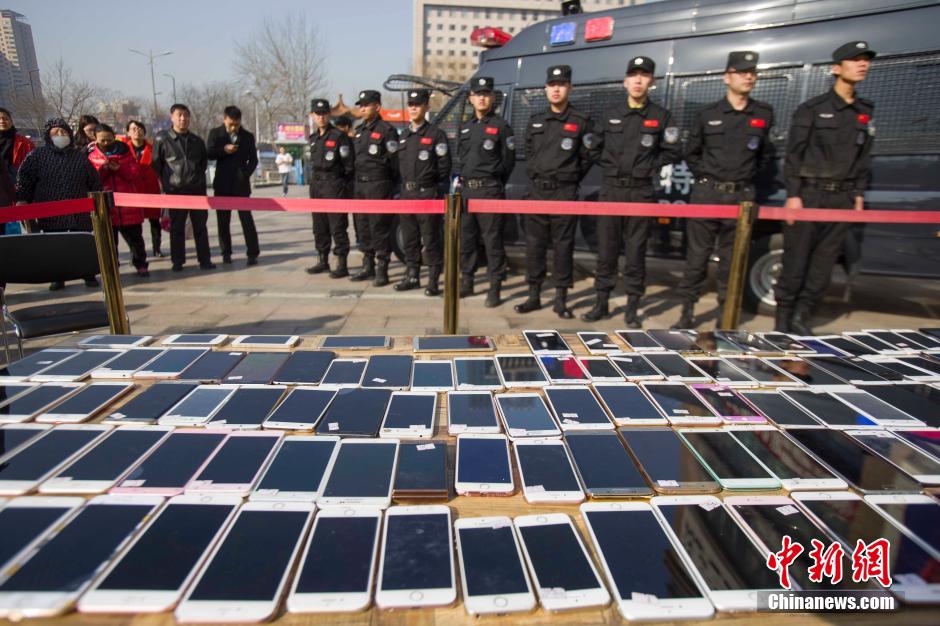 3月2日,山西太原警方發(fā)還民眾被盜手機。近日,太原市公安局偵破一個手機扒竊犯罪團伙,破獲案件200余起,追繳手機180余部。張云 攝